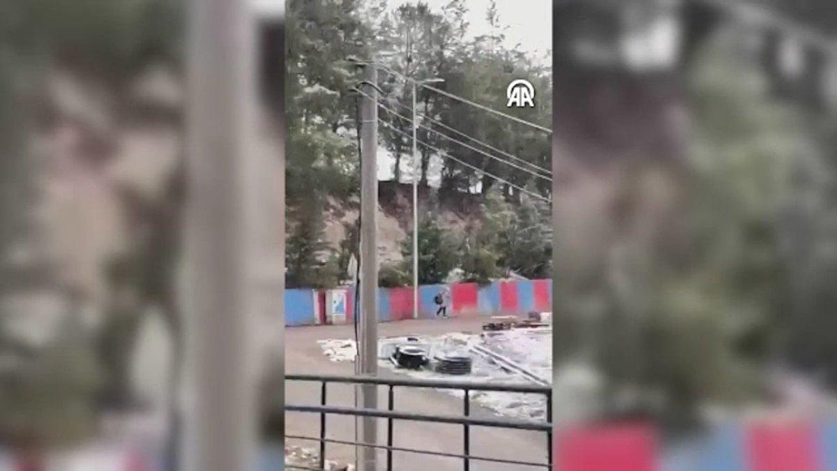 - Marş sonrası öğrencinin okuluna koştuğu anlar, cep telefonu ile kaydedildi.