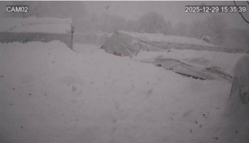 Üzerinde biriken karlar nedeniyle seranın çöktüğü anlar, güvenlik kamerasına yansıdı.