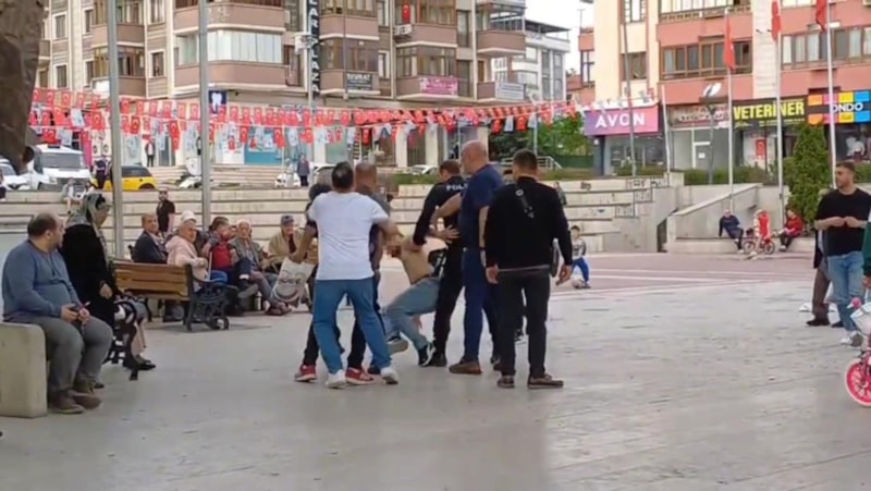 Misak-ı Milli Meydanı'nda iki kişi arasında henüz bilinmeyen bir nedenle kavga çıktı.