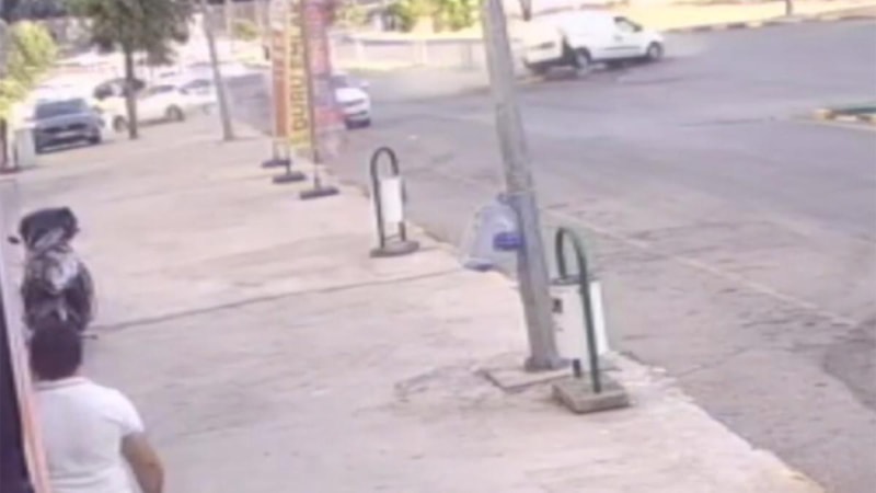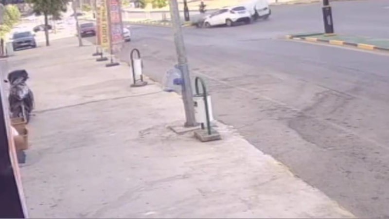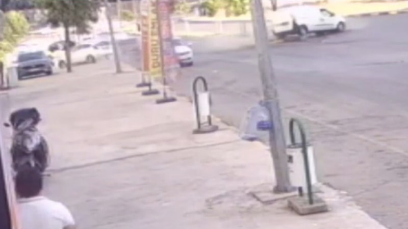 Kaza anı çevredeki bir iş yerinin güvenlik kamerasınca kaydedildi.