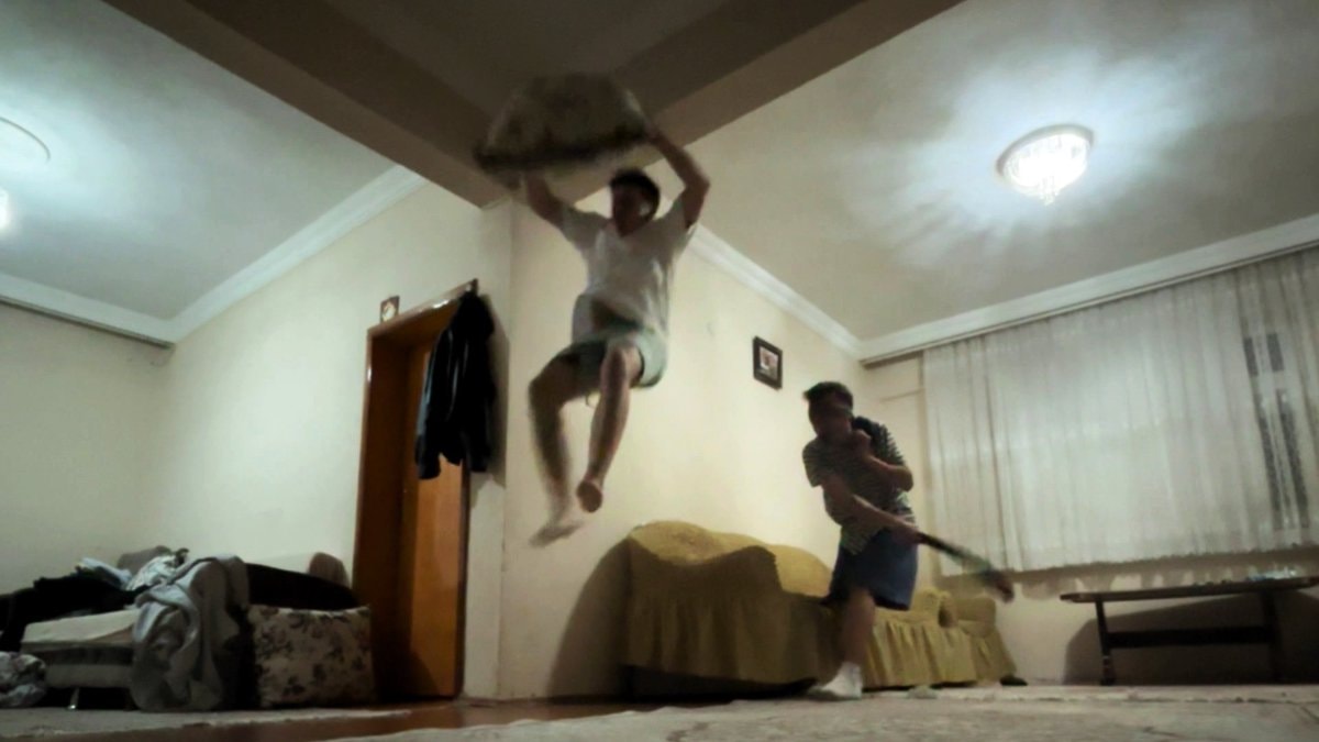 Oyun sırasında Erken, koltuğun üzerinden atladı.