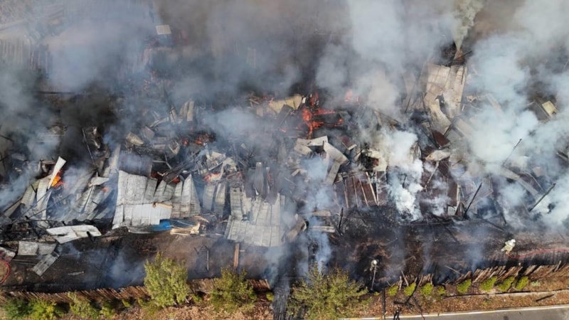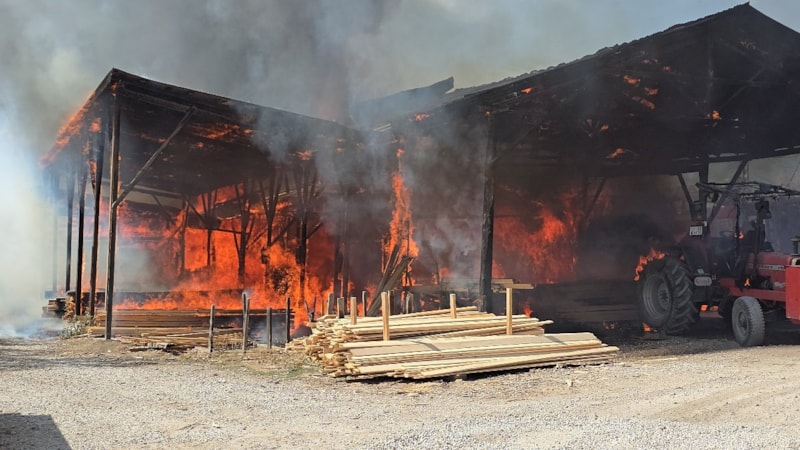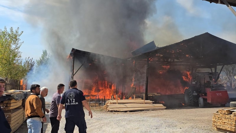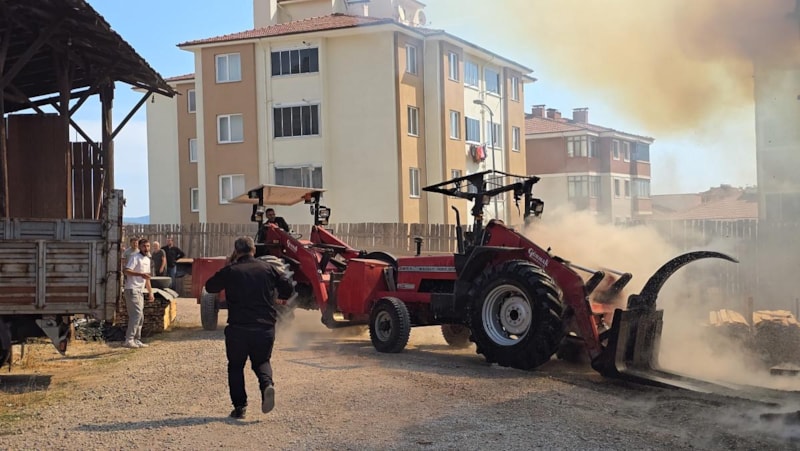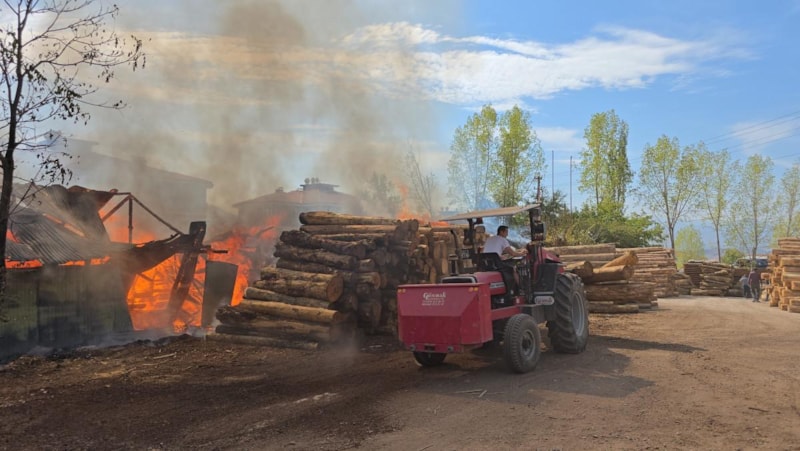Zaman zaman patlamaların yaşandığı yangında ekipler, alevleri durdurmak için yoğun çaba sarf etti. Çatılar çökerken, tomruklar traktörle kurtarıldı.