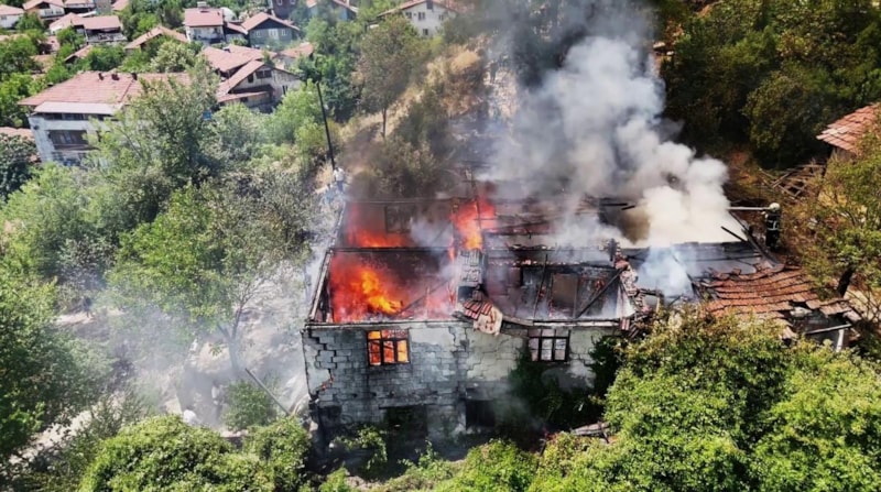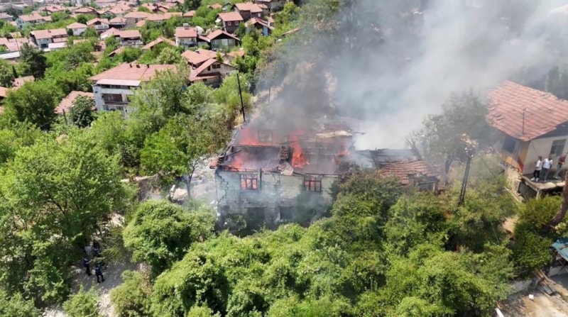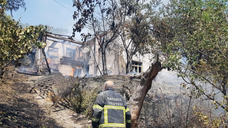 Karabük'te otluk alanda çıkan yangın, rüzgarın etkisiyle yayılarak iki katlı müstakil bir eve sıçradı. Alevlere teslim olan ev tamamen yanarak kullanılamaz hale geldi.