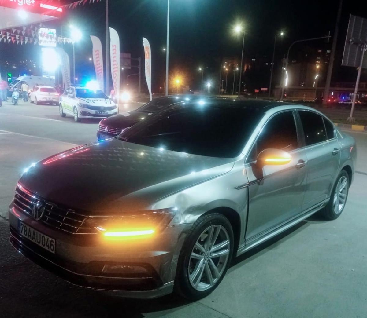 Karabük'te A.H.A. idaresindeki otomobil, akaryakıt istasyonuna girmek istediği sırada önce E.G. idaresindeki otomobile ardından kaldırıma çarpması sonucu ters döndü.