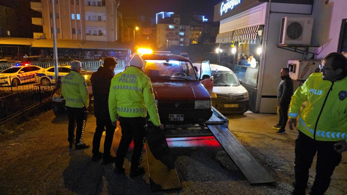 Otomobil sürücüsü Murat Özcan ve yanındaki arkadaşının alkolden ayakta durmakta zorlanırken, dakikalarca trafik ekiplerine direndi.