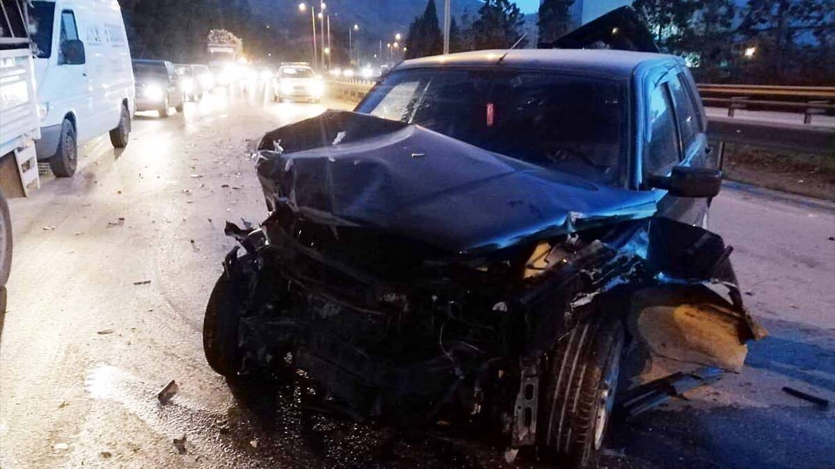 Önce refüje çarpan otomobil, hızını alamayarak daha sonrada önünde seyreden S.E. yönetimindeki 78 EB 092 plakalı tıra çarptı.