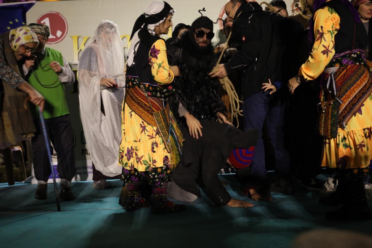Davul ve şarkılar eşliğinde gezen kostümlüler, maniler okuyarak torba atma geleneği ile esnaflardan yiyecek istedi. Kostüm giyen tiyatro oyuncuları şenliğe katılanlarla şakalaştı, tiyatro gösterileri sunup, ‘Kalandar’ geleneklerini canlandırdı.