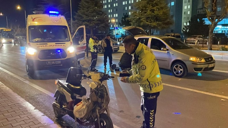 Karaman’da akşam saat 21.00 sıralarında Üniversite Mahallesi İbrahim Öktem Bulvarı üzerinde, R.Ş. (24) kullandığı elektrikli bisikletle yaya geçidinde yayalara yol vermek için duran E.H.K. idaresindeki 70 DS 040 plakalı otomobile arkadan çarptı.