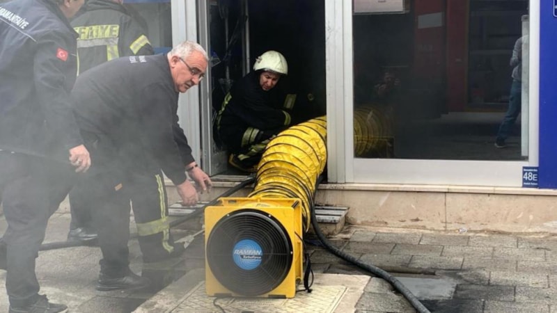Polis, güvenlik önlemi kapsamında bulvarı araç trafiğine kapatırken, itfaiye ekipleri yangına müdahale için bankanın cam kapısını kırarak içeriye girdi. Öncelikle içerideki yoğun dumanı özel tahliye sistemiyle boşaltan ekipler, ardından maske ve koruyucu ekipmanlarını kuşanarak binaya girip alevleri kontrol altına aldı.