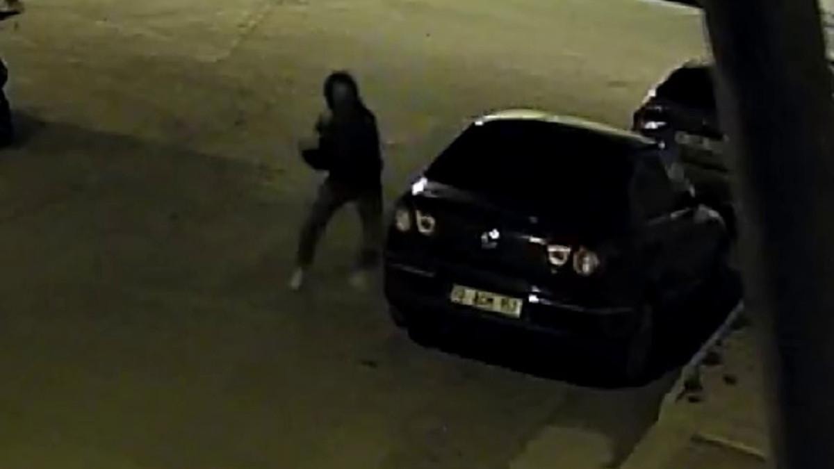 Güvenlik kamerası görüntülerini izleyen polis ekipleri otomobile zarar veren saldırganı yakalamak için çalışma başlattı.