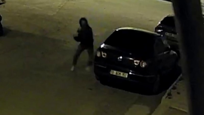 Karaman merkez Cedit Mahallesi'nde yüzünün tanınmaması için motosiklet kaskı takan saldırgan, sokakta bir süre dolaştıktan sonra park halindeki otomobilin yanına geldi.
