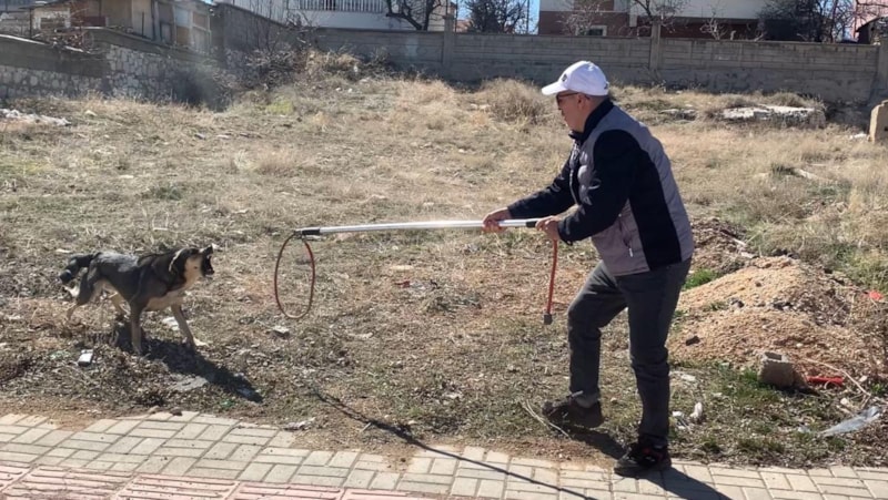 Uzun uğraşlar sonucu belediye ekibince uyuşturularak yakalanan köpek, daha sonra belediyeye ait köpek barınağına götürüldü.