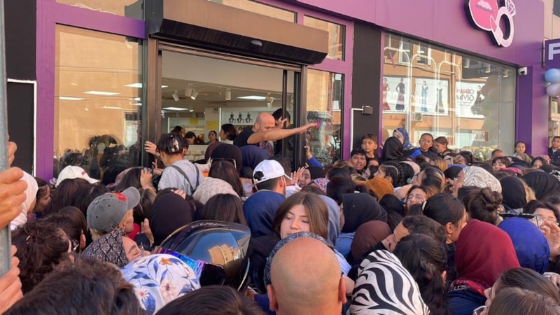 Saat 11:00'da mağaza kepenklerinin açılmasıyla birlikte kadınlar içeri girebilmek için yoğun şekilde yarıştı.