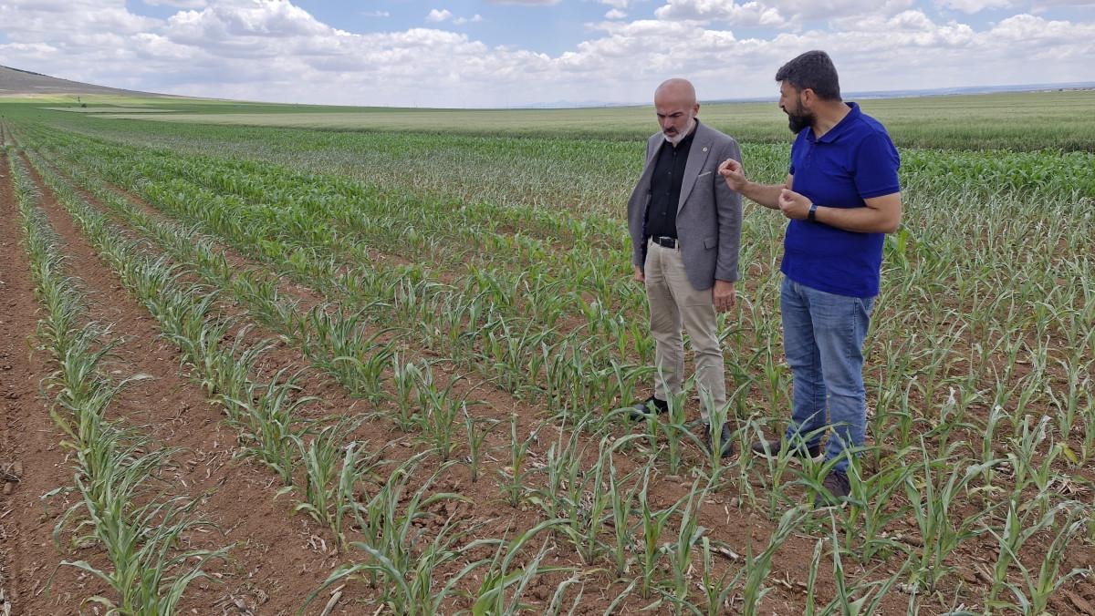 Dron ile zarar verilen mısır tarlasında incelemelerde bulunan Karaman Ziraat Odası Başkanı Mehmet Bayram, şunları söyledi:
