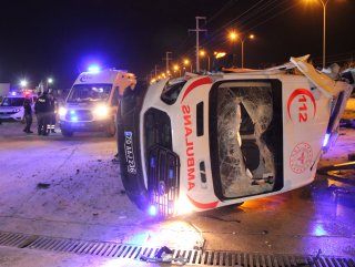 Karaman’da, E.T. yönetimindeki 70 AAJ 236 plakalı ambulans, seyir halindeyken sağ ön tekerinin patlaması sonucu biranda kontrolden çıktı.