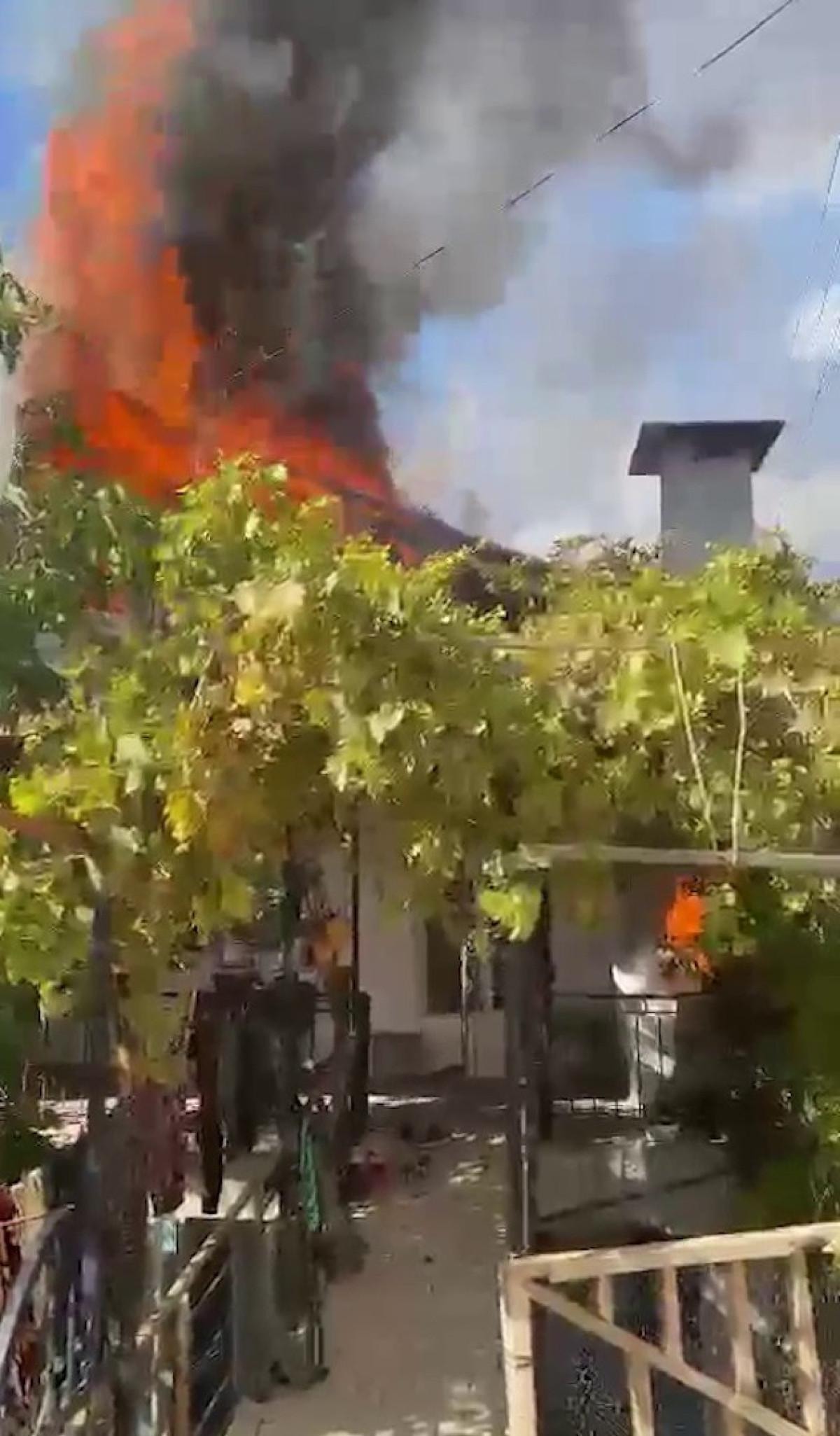 İtfaiye ekiplerince yangın söndürülerek kontrol altına alınırken, evde maddi hasar meydana geldi.