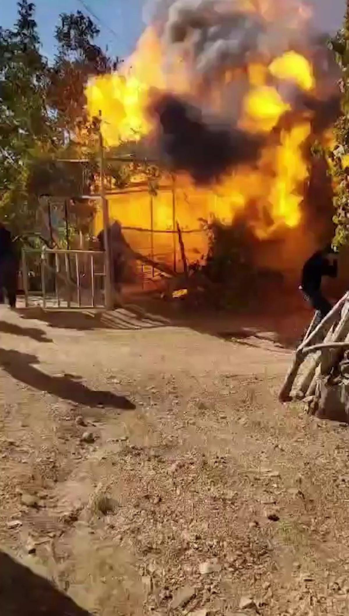 Olay yerine gelen itfaiye ekipleri yangına müdahale ettiği esnada evde bulunan tüp bomba gibi patladı.