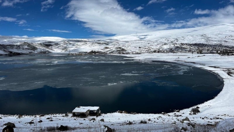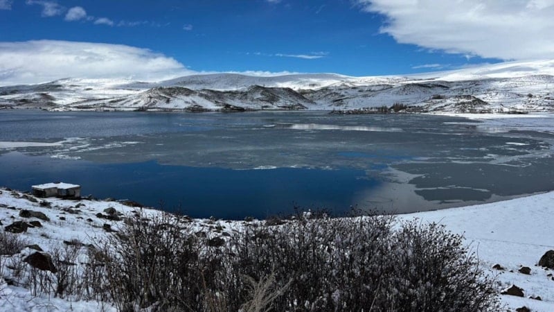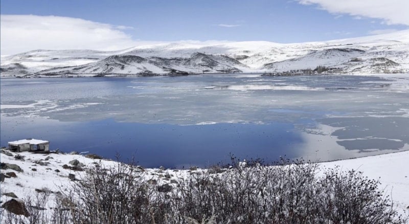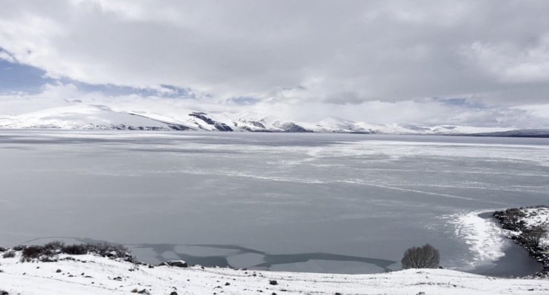 Denizden 1959 metre yükseklikte, Kars ile Ardahan arasında kalan Çıldır Gölü'nün yüzeyi, 2025 yılının Aralık ayında hava sıcaklığının sıfırın altında 25 derecelere kadar düşmesi ile dondu.