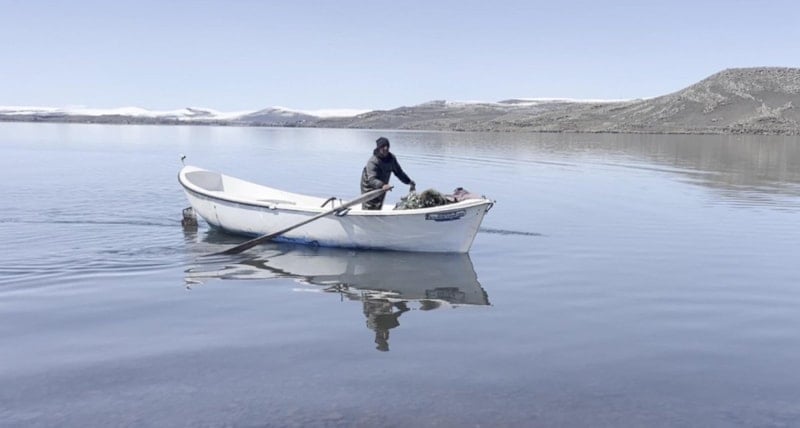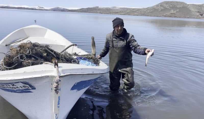 Kışın delikler açarak Eskimolar gibi balık avlayan balıkçılar, buzların erimesiyle sandallarıyla göle açılıp ilk ağları attı.