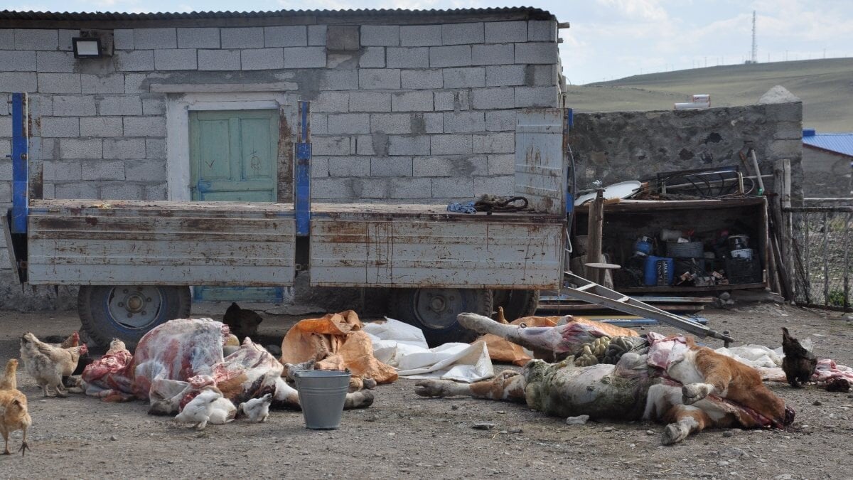 “50 hayvan öldü, veterinerlerin bıçakla yaraladığı hayvanlar var. Gazını çıkartmak için hayvanlar ot gaz yaptığı için akciğeri patlatmış. 50 tanesi öyle öldü. Yaralı da 100 hayvan var akşam veterinerler burada çalışıyordu.