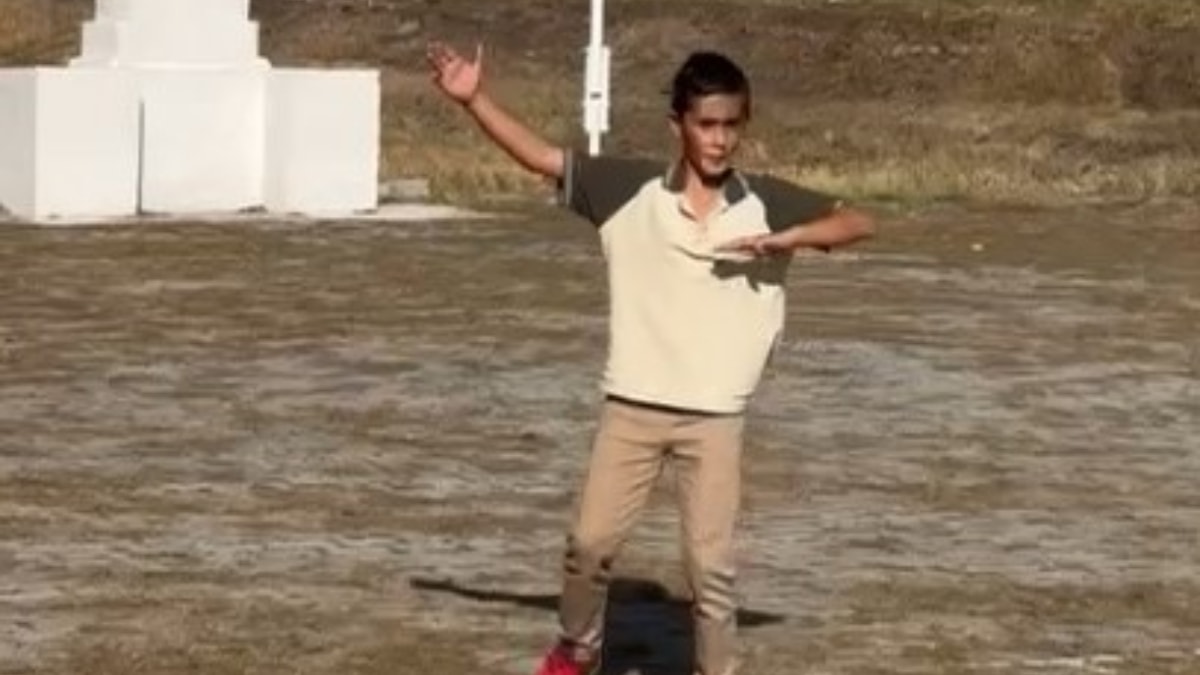 Kars'ın Akyaka ilçesine bağlı Şahnalar köyünde 5'inci sınıf öğrencisi Hamza Tan, okuldaki bir etkinlikte çalan Ayna'nın "Gurbette yalnız kaldım be ceylan" parçasına eşlik ederek Kafkas oyunu oynadı.