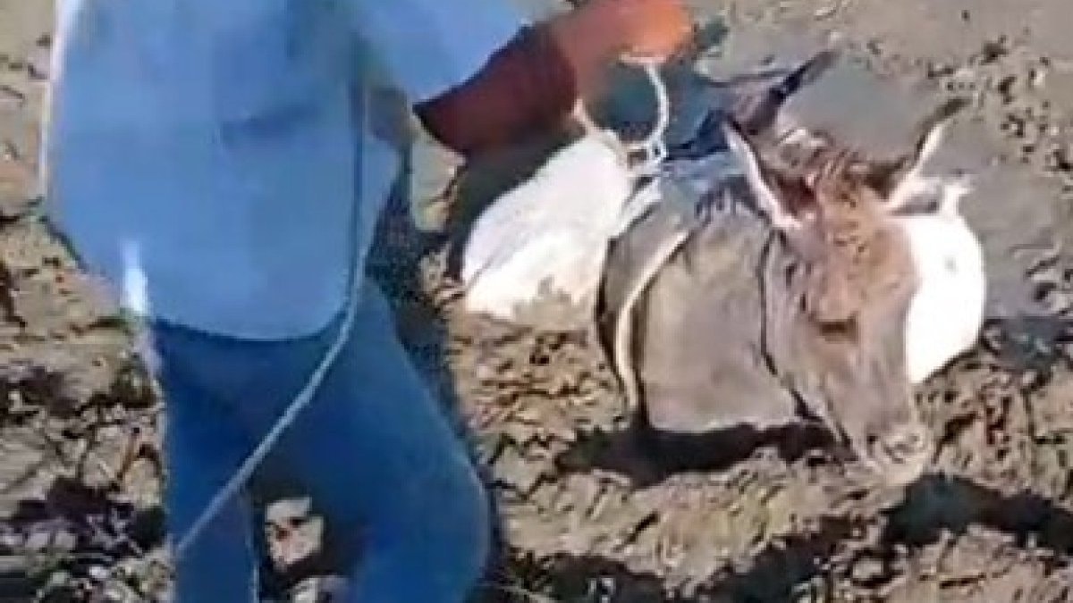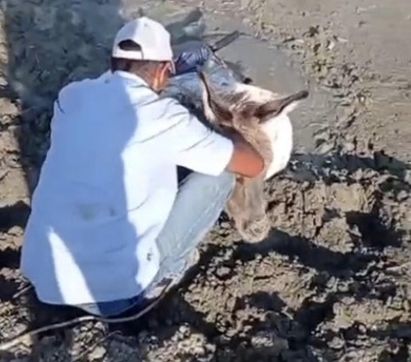 Eşeğin çamurdan kurtarılma operasyonu başarıyla sonuçlanırken, eşeği kurtaran vatandaşların kendi aralarında konuşmaları güldürdü.