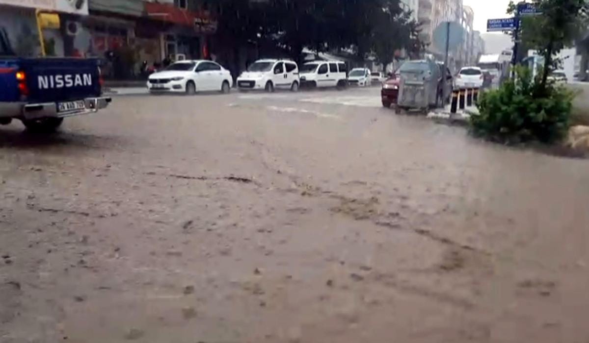 Dolu sonrası yağan sağanakta ise cadde ve sokaklar göle döndü.