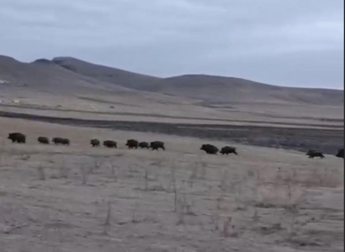 Domuz sürüleri, vatandaşlarla karşılaşınca koşarak bölgeden uzaklaşırken, domuzları gören bir vatandaş ise, “Gençler nereye gençler, gençler” diyerek bağırdı.