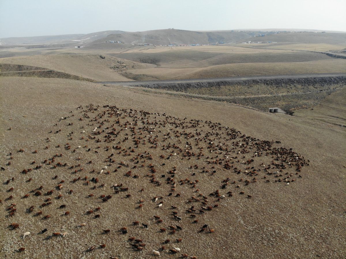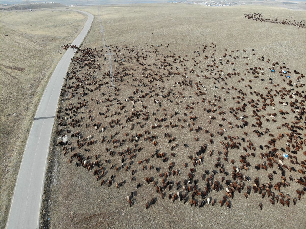 Göçerlerin ve hayvanların kilometrelerce süren yolculuğu, binlerce küçükbaş hayvanın arazilere yayılması bölgenin kültürel ve doğal yaşamının vazgeçilmez bir parçası olarak havadan görüntülendi.