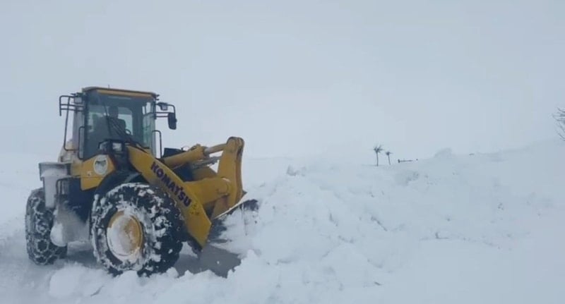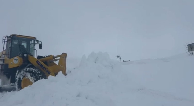 Görüş mesafesinin zaman zaman 1 metreye düştüğü bölgede, kar kütleleri arasında iş makineleri güçlükle ilerliyor.