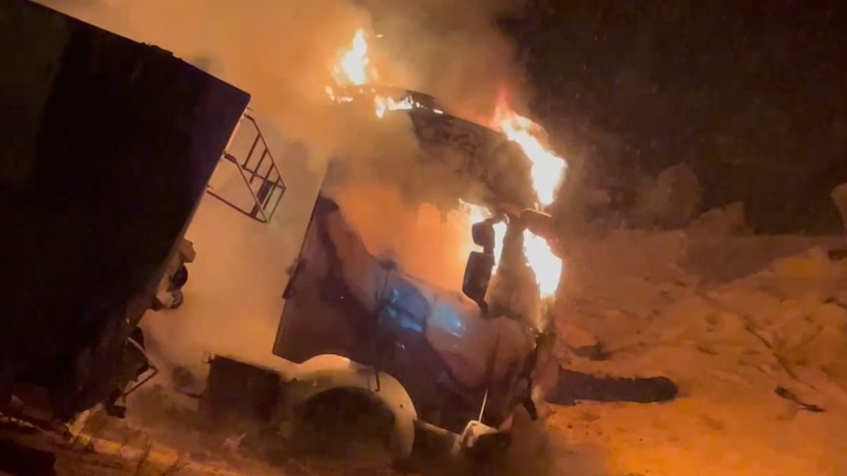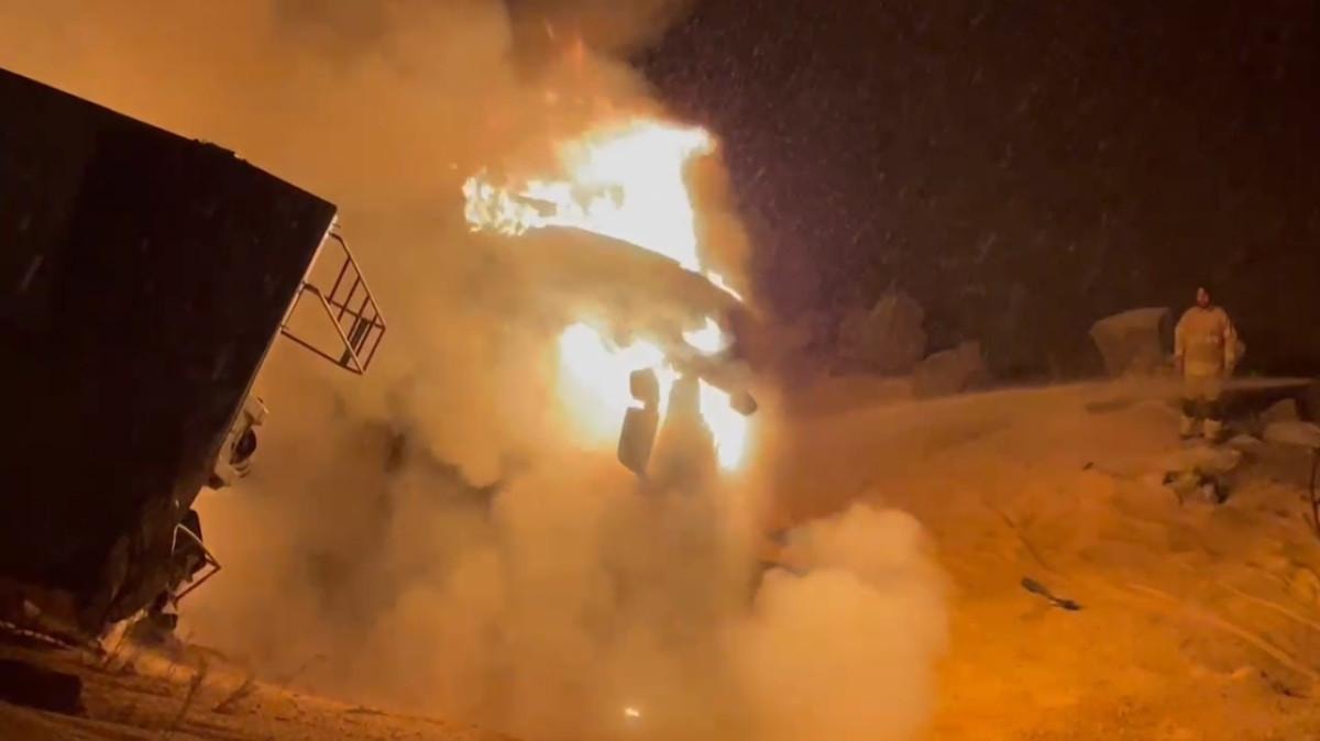 Bölgeye gelen itfaiye ekipleri, uzun uğraşlar sonucu tırı söndürmeyi başardı.