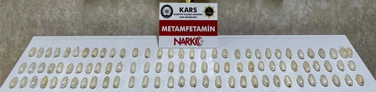 Kars Harakani Devlet Hastanesi'ne götürülen Yenkejeh'in çekilen röntgeninde, makatında uyuşturucu tespit edildi.