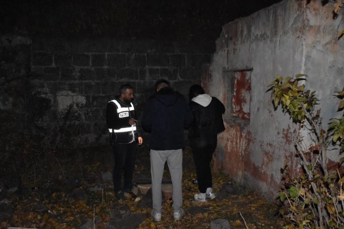 Kars'ta okul çevreleri ve metruk binalarda, polis tarafından incelemeler yapılıyor.