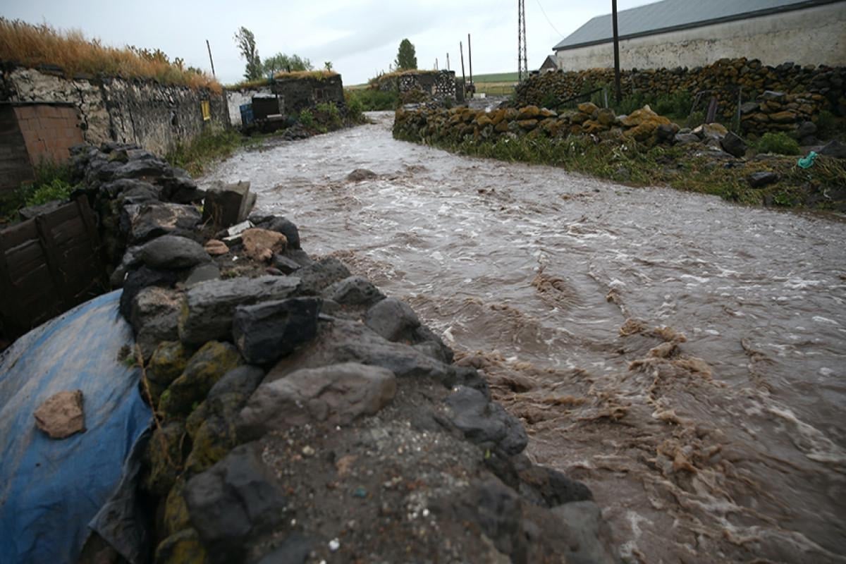 Kars'ta iki gündür aralıklarla devam eden sağanak yağış hayatı olumsuz etkiliyor. Akşam saatlerinde etkisini artıran şiddetli dolu ve sağanak, bölgedeki bazı köylerde sele neden oldu.