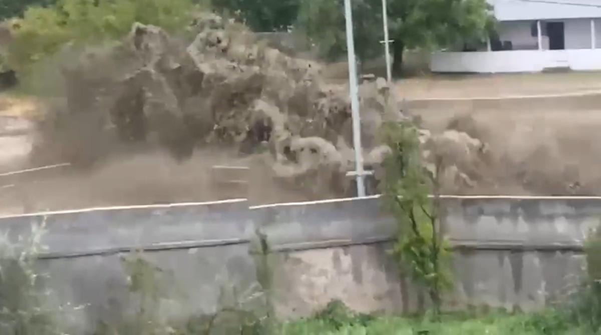 Görüntülerde, bir anda gelen sel sularının taşkın koruma duvarına çarpması, direkleri yıkması, köylülere ait malzemeleri sürükleyip götürmesi vatandaşların panik halinde konuşmaları yer alıyor.