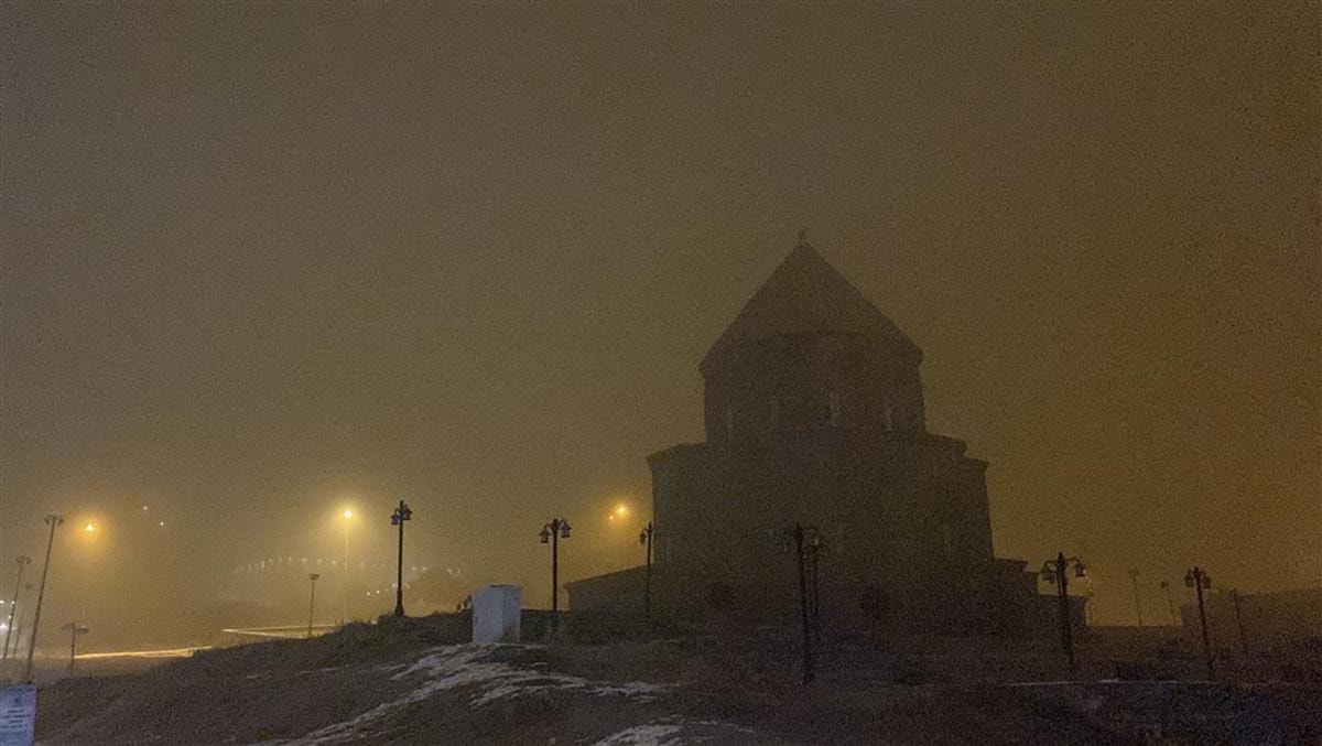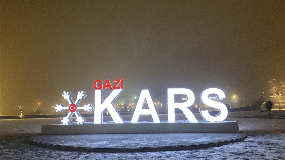 Gazi Kars Bedesten bölgesindeki 'Kars' yazısı önünde hatıra fotoğrafı çektirenler, sis nedeniyle Kars Kalesi gözükmeyince hayal kırıklığı yaşadı. Sis gece boyu devam etti.