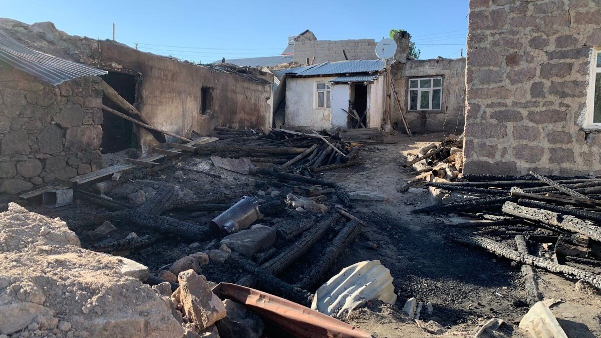 Kars’ın Sarıkamış ilçesi Çamyazı köyünde çıkan yangında 4 ev, 5 ahır ve 1 traktör yanmaya başladı.
