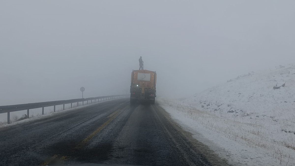 Karayolları ekipleri, yollarda kar küreme ve tuzlama çalışması yaparken, trafik ekipleri ise güzergahı kullanan sürücüleri dikkatli olmaları konusunda uyardı.