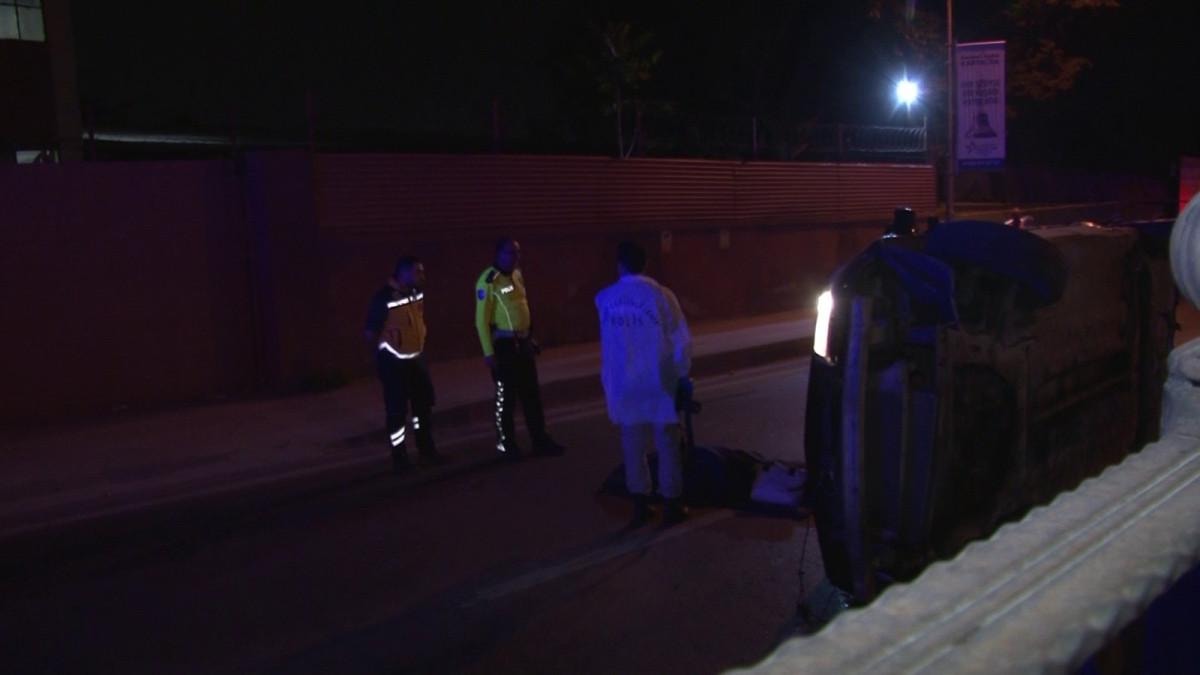 İstanbul Kartal'da 03.10 sıralarında Çavuşoğlu Mahallesi Sanayi Caddesi üzerinde, içinde 3 yolcu bulunan 34 UK 6825 plakalı otomobil sürücüsünün kontrolünden çıkarak kaldırıma çarpıp yan yattı.