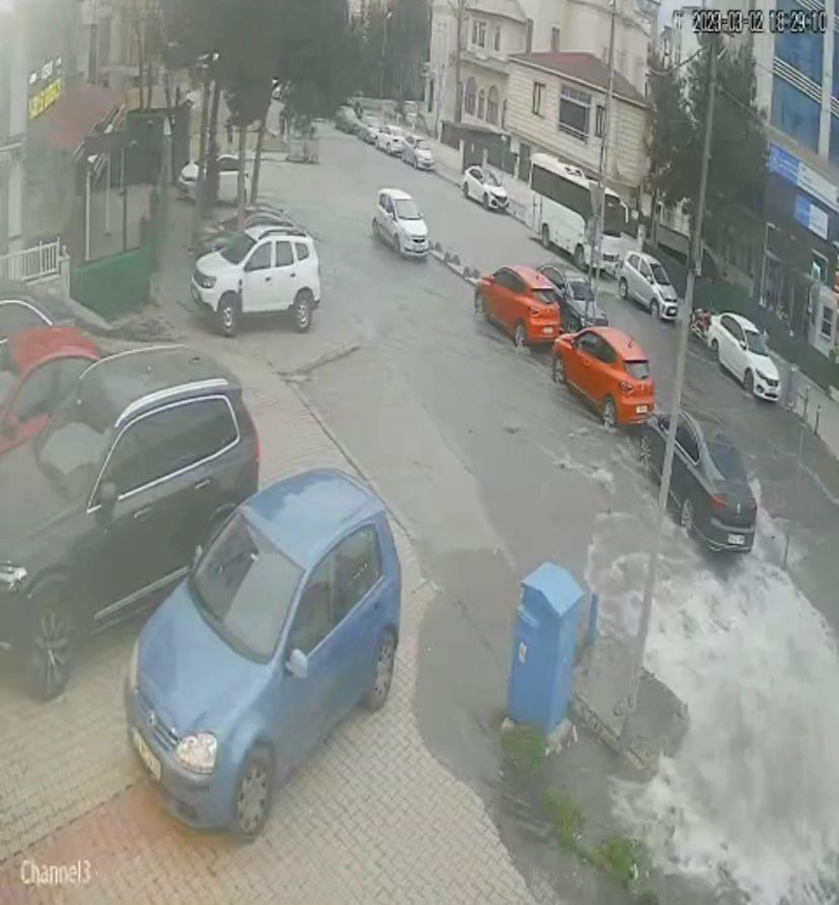 Bu sırada park halindeki araçların da etrafa saçılan tazyikli sudan etkilendiği görüldü.
