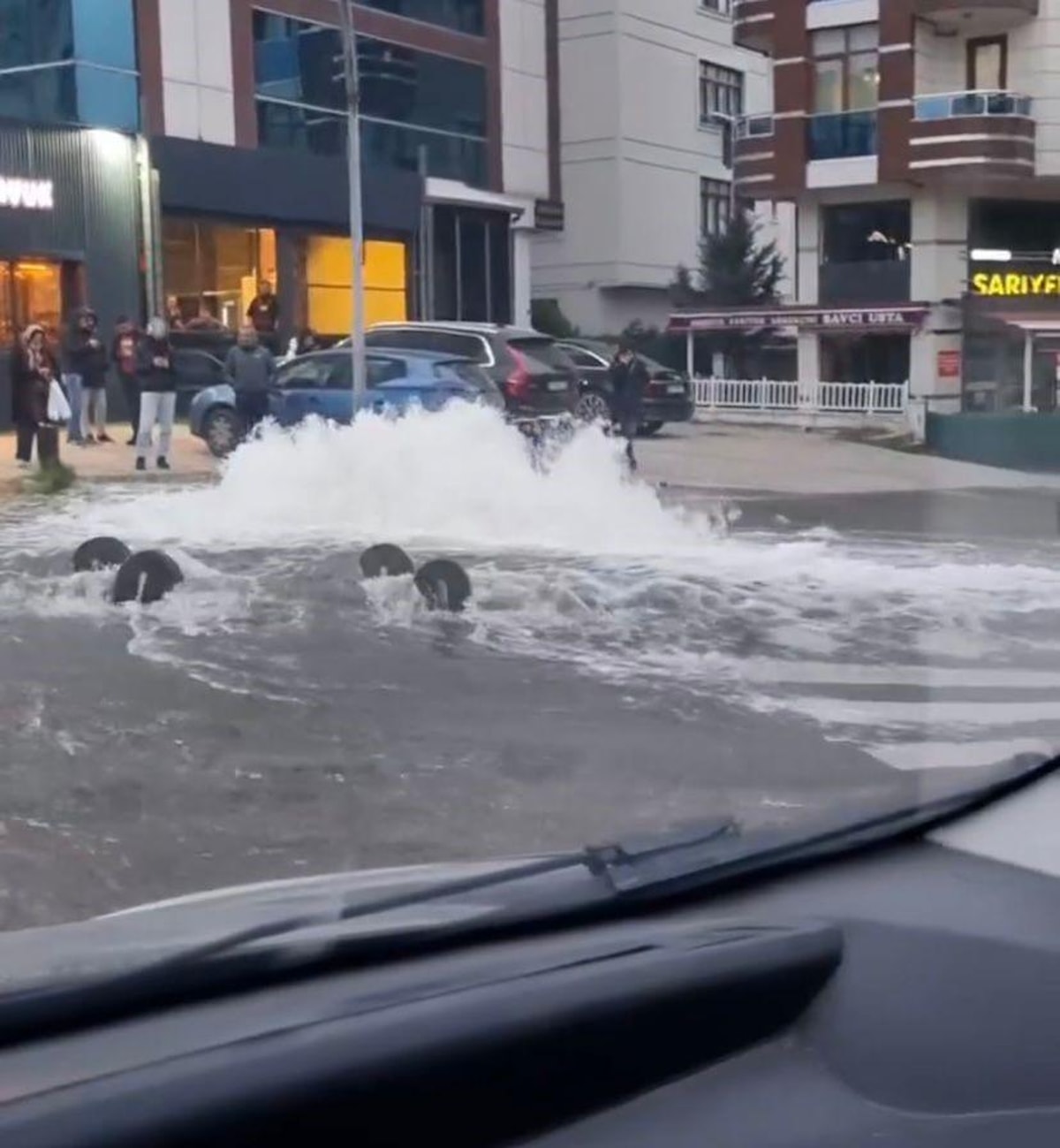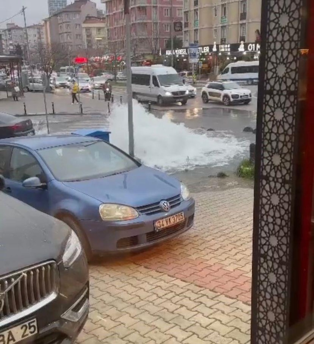 Bölgede cadde üzerinde bulunan İSKİ'ye ait kanalizasyon hattındaki rögar kapağı patladı.
