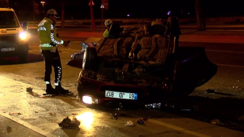 Bunun üzerine, kontrolden çıkan otomobiller birbirleriyle çarpıştı. Kazanın şiddetiyle savrulan otomobillerden biri; önünde ilerleyen başka bir otomobile, diğeri elektrik direğine çarparken yarışan 3'üncü otomobil ise kaldırıma vurup takla attı.
