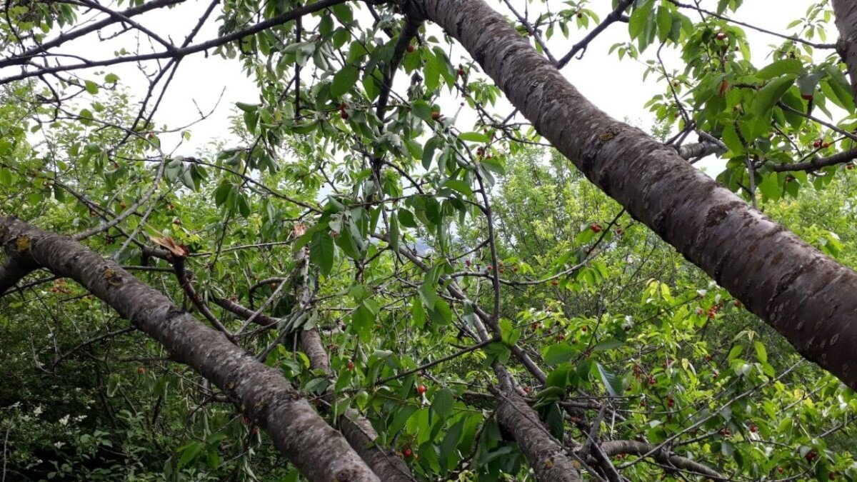 Bayram Özkan’a ait bahçede, ağaçların dalları kırıldı.
