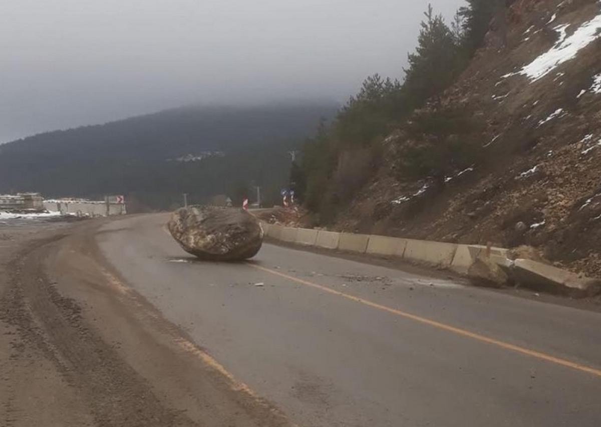 Kısa süre içinde bölgeye ulaşan ekipler, kayayı güvenli bir şekilde yoldan kaldırarak trafiği tekrar normale döndürdü.