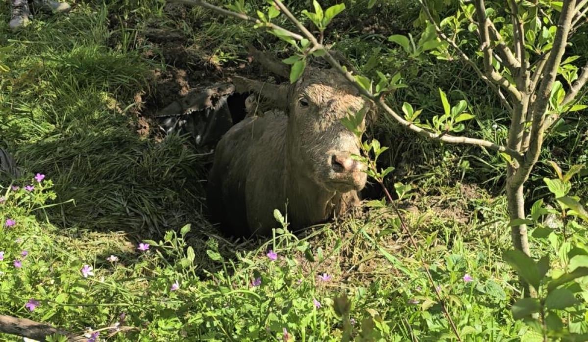 İNEK DÜŞTÜĞÜ FOSEPTİKTEN ÇIKARILDI