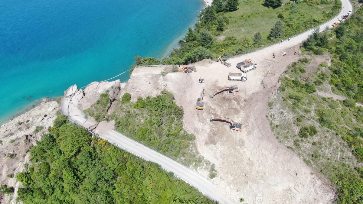 Ekiplerin heyelan bölgesinde yürüttüğü çalışmaları, Karayolları 15. Bölge Müdürü Alpaslan Eşlik de yerinde inceledi.