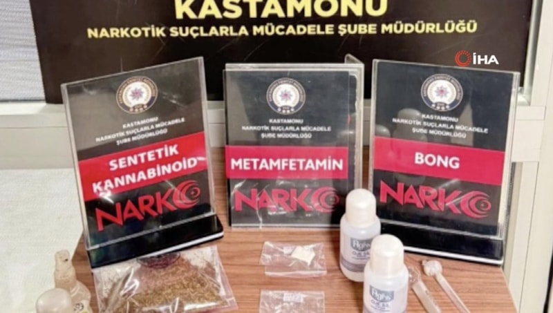 Yapılan aramalarda toplam 19,50 gram metamfetamin, 57,57 gram kannabinoid, 7,24 gram kannabinoid ham maddesi, 67 adet sentetik ecza, 7 adet kilitli poşet, peçeteye emdirilmiş halde 4 parça kannabinoid, 2 adet cam düzenek (payp), 200 mililitre aseton ve 21 adet 9 milimetre çapında tabanca fişeği ele geçirildi.