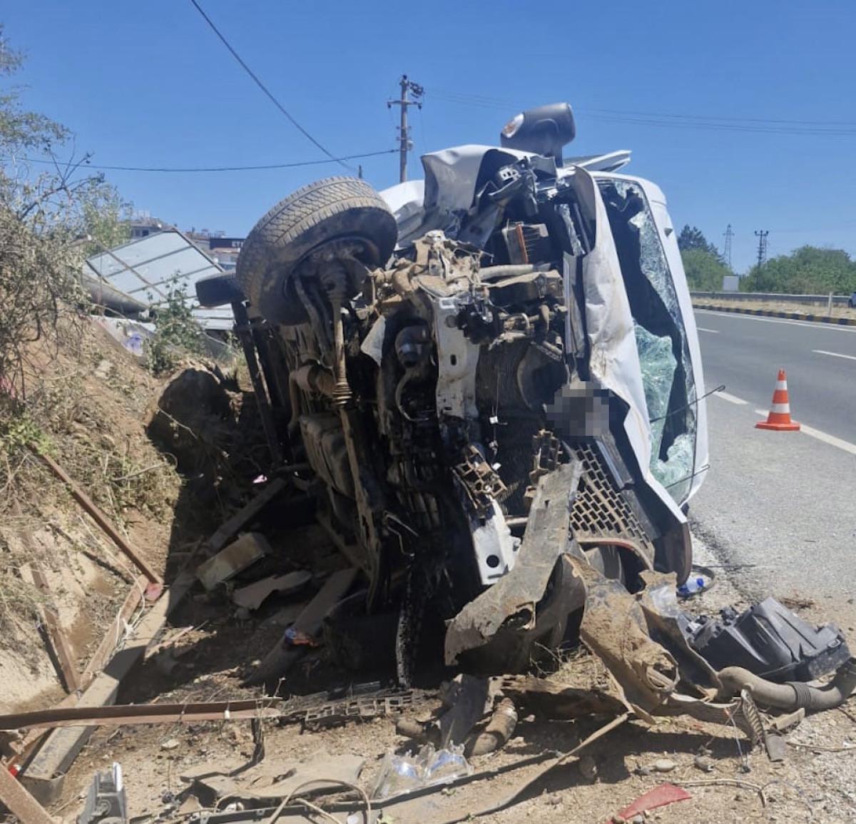 Çarpmanın etkisiyle savrulan minibüs, su kanalına düşerek devrildi.