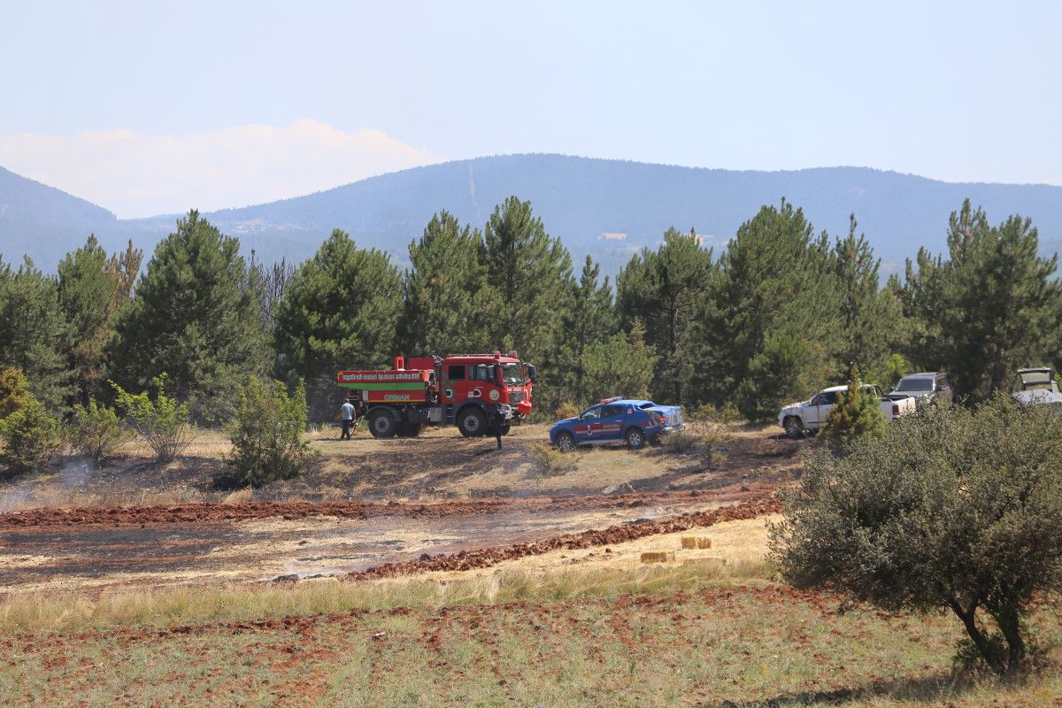 Kastamonu'nun Taşköprü ilçesine bağlı Örhenli köyünde balya makinesinde başlayan yangın, kısa sürede tarlaya yayıldı. Yangını fark eden vatandaşlar durumu 112 Acil Çağrı Merkezi’ne bildirdi.