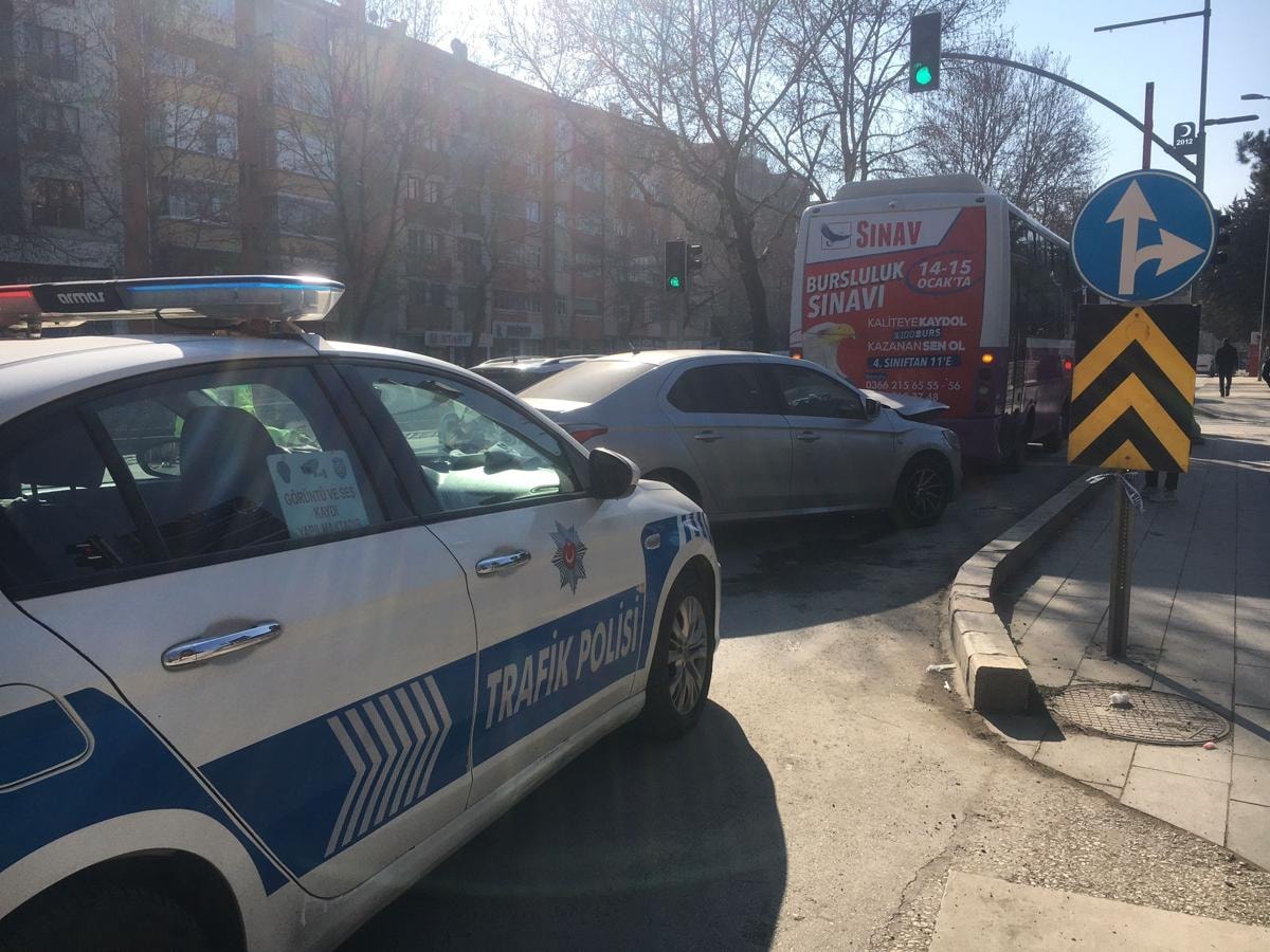 Direksiyon hakimiyetini kaybeden otomobil sürücüsü, Tolga K. yönetimindeki özel halk otobüsüne arkadan çarptı.